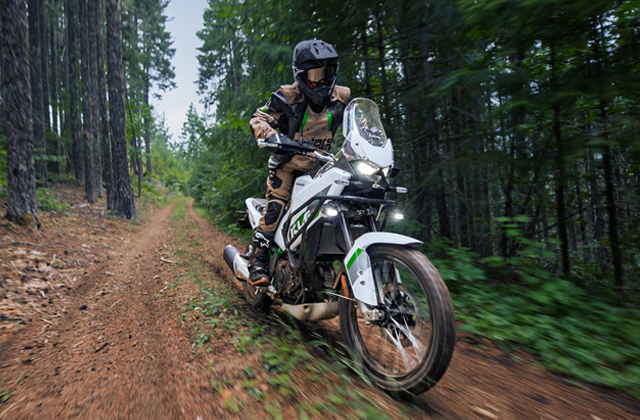 Jazda poza utwardzonymi drogami jest naturalna dzięki pozycji kierowcy, która jest równie wygodna zarówno na stojąco na podnóżkach, jak i na siedząco. Dla wnikliwych obserwatorów, wzornictwo inspirowane motocrossem KX jest widoczne w długich, gładkich osłonach bocznych i smukłym zbiorniku paliwa, które tworzą płynny układ z kierowcą, ułatwiający mobilność.